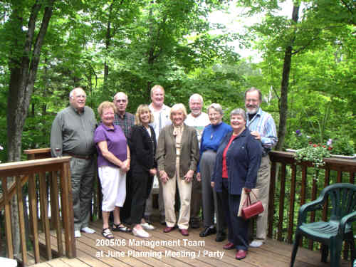 ![]() Management Team 2005/2006 L to R: Keith Brown, Margaret Brady, Rod Woolham, Chris McGuire, Dale Nugent, Denise Mullins, Ian Doig,Ella Thomson, Carol Trischuk, & Colin Stephenson. Missing: John Gibb-Carsley, Clark Theobald. Taken at the 10th Anniversary Dinner October 4, 2006 ![]() L to R: Wilf Parry, Grover Lightford, David Crowley, Bob McMahon, Fred Lepine, Denise Mullins, Bob Black, Peter Code, Dale Nugent, Ian Doig ![]() |
